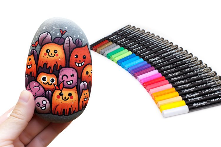 We've put together some inspiring ideas for you to turn ordinary pebbles into spooky Halloween decorations or gifts for fun. All you need are some clean rhinestones, acrylic markers or acrylic paints and brushes and an idea!